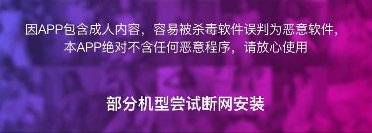 熊猫AV视频APP含有成人内容,近日被某些杀毒软件误判为恶意软件;我们有正当广告收益,承诺绝不放置任何恶意程序,请您放心安装使用!